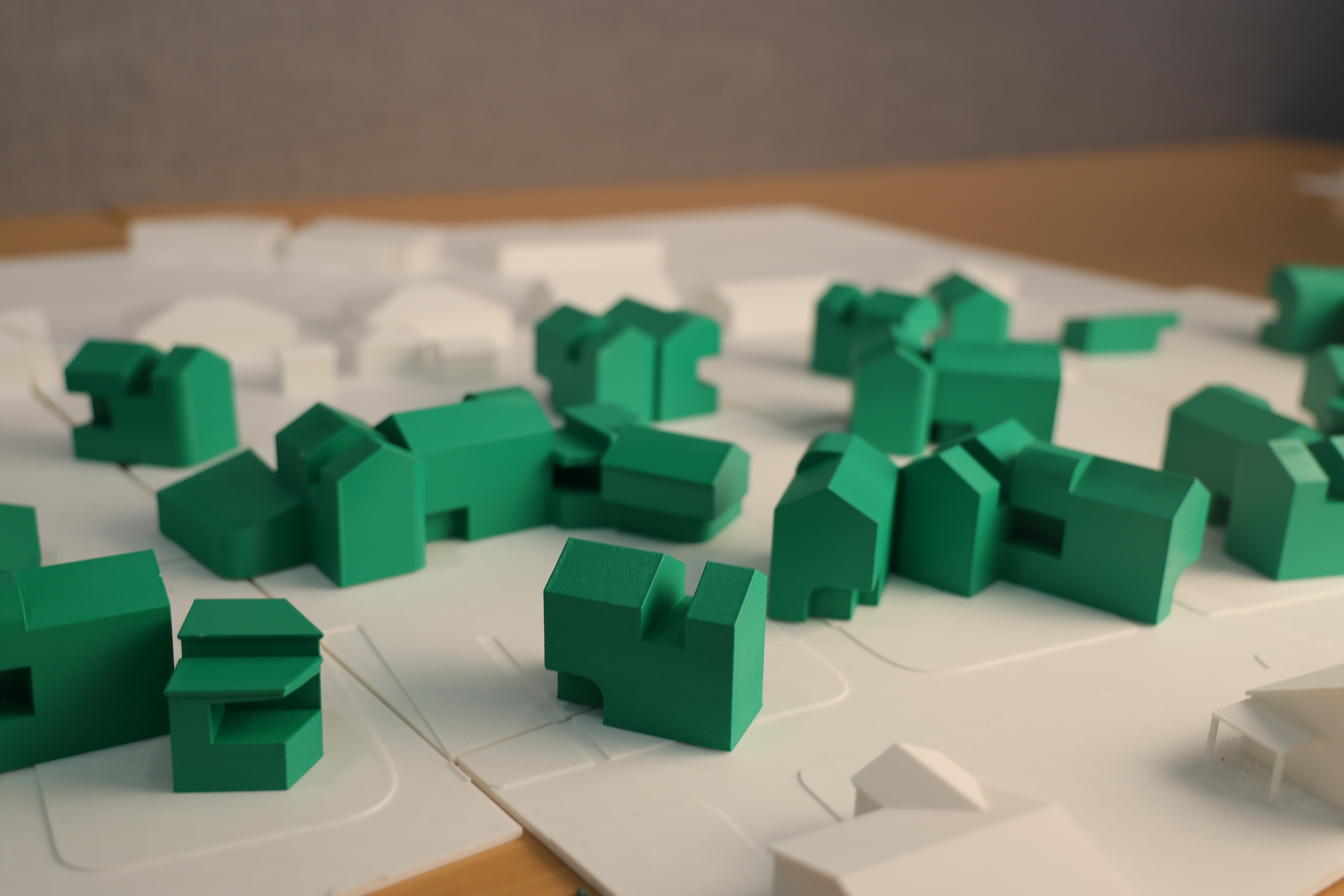 We created 5 unique massings that each allow for various types of aggregations and connections. This site hosts 14 different aggregations of the 5 massings. There is a range of aggregations from free-standing single homes to clusters of all 5 massings, along with a diverse typology of dwellings to accommodate various household sizes, including: two 1 bedroom units, one 2 bedroom unit, and two 3 bedroom units.