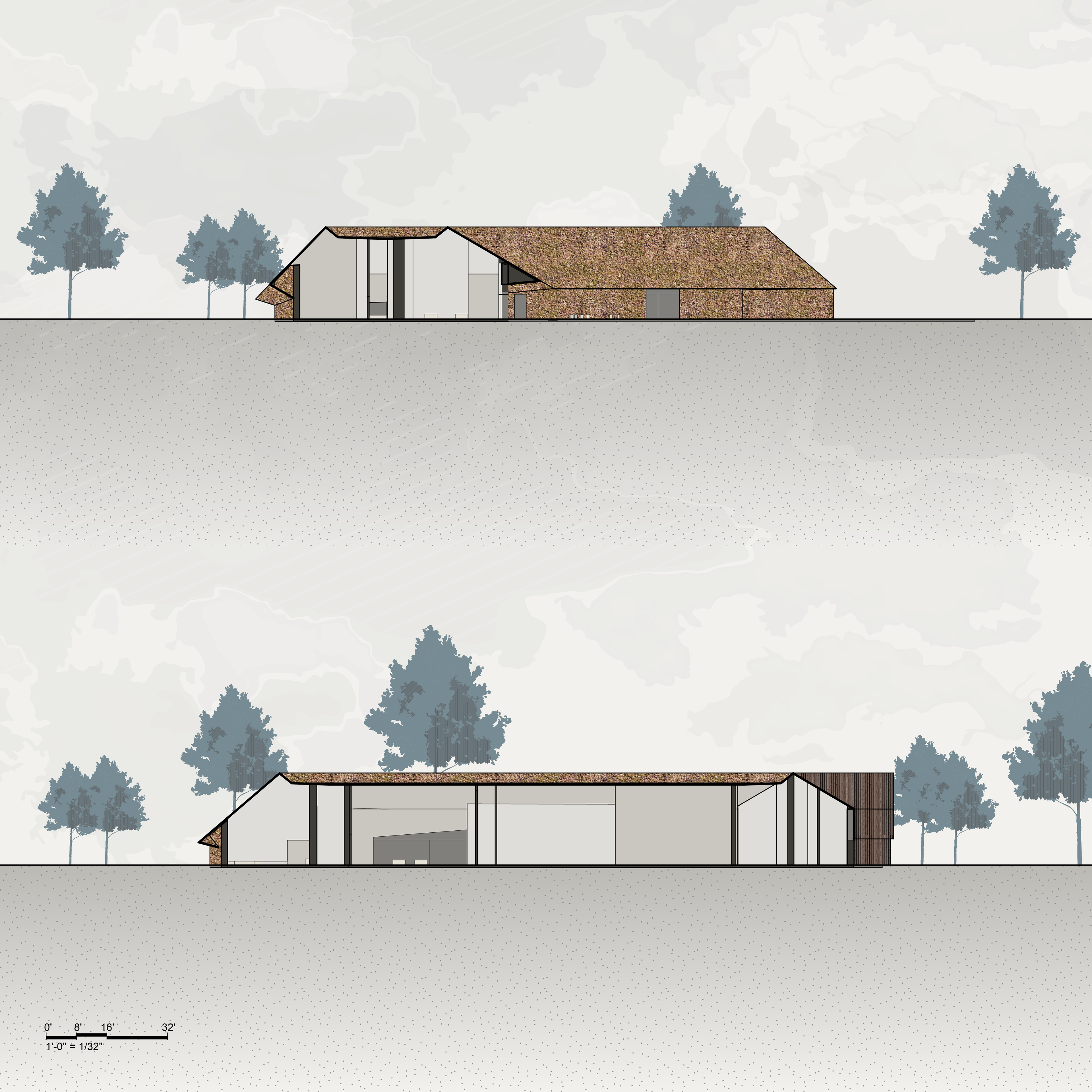 A precedent study of a visitor center in Denmark for the Wadden Sea designed by Dorte Mandrup. The use of thatch is intended to connect the project with regional historical materials, while the form adds a modern twist on pitched roofs. The program of this visitor center includes a series of exhibit spaces indented to connect visitors with bird migration and anatomy, the sky, tides, and storm floods.